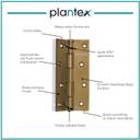 Plantex Door Hinges Are Made Of Virgin Stainless Steel And Are Rust And Corrosion-Proof, Ensuring Durability For Years To Come. With A 270-Degree Opening And Appropriate Flush-Mount Csk Screws, These Hinges Are Perfect For Wide-Open Doors. The Brass Antique Finish Remains Constant Over Time And The Hinge Is Thoroughly Greased For Smooth Functioning. These Hinges Are Composed Of High-Strength, Long-Lasting Steel And Can Be Used In A Variety Of Settings, Including Bathrooms, Bedrooms, Store Rooms, And Offices. The Package Includes 24 Pieces Of Stainless Steel Door Hinges, Making Them A Perfect Fit For Indian Houses.