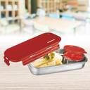 NAYASA Eco Roti Stainless Steel| Four Side Clip-lock | BPA Free | Food Grade | Red 1 Containers Lunch Box (580 ml)
