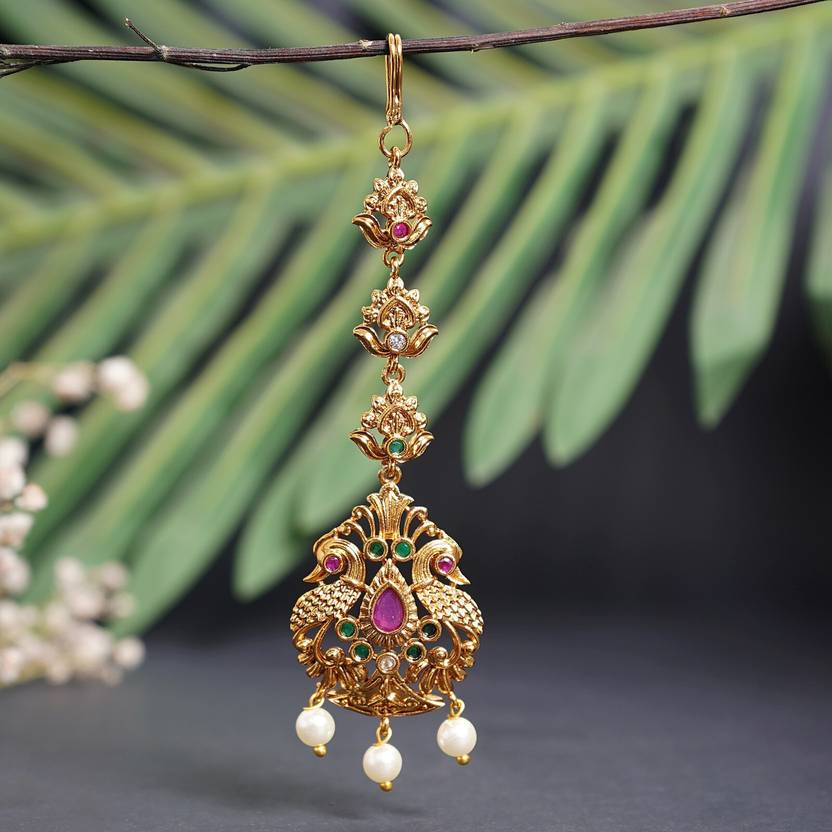 Perfect for weddings, festivals, engagements, or traditional functions, this maangtika enhances your overall look effortlessly. The antique gold finish blends beautifully with lehengas, sarees, anarkalis, and other ethnic outfits.