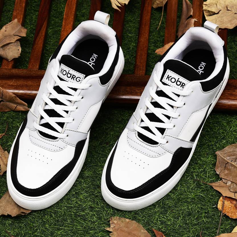 Koburg Zest Casual Shoes for Men | Comfortable EVA Sole | Stylish Lace-Up KG-418 Sneakers For Men (White, Black , 6)