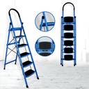 IMPULSE Prime Steel Folding 6 Step Ladder for Home - 6 Wide Anti Skid Steps (Blue & Black) Steel Ladder (With Platform)