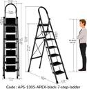 Plantex Anti-Skid Strong Foldable Wide 7 Step Ladder/Ladder for Home-(Apex -Black) Steel Ladder (With Platform)