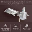 Plantex Stainless Steel 304 Grade Squaro 2 In 1 Tooth Brush Holder - Tumbler Holder - Soap Holder - Soap Dish - Bathroom Accessories (Silver)