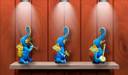 Ganpati with Musical Instrument Blue Metal Art Sculpture Set Of 3 28 cm Religious Idol & Figurine (Metal, Blue)
