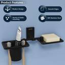 Plantex 2in1 Soap Dish with Tumbler Holder/Soap Stand Bathroom Accessories (Matt Black) Stainless Steel Toothbrush Holder (Black, Wall Mount)