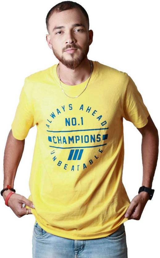 Pack of 3 Men Printed Round Neck Pure Cotton Yellow T-Shirt
