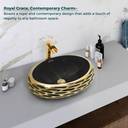 Plantex Ceramic Basin for Bathroom/Table Top Basin/Washbasin for Bathroom - (EQTT-594) Counter Top (Black & Gold)