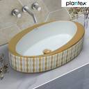 Plantex Ceramic Basin/Washbasin for Bathroom/Tabletop Basin for Home/Office/Hotel (NCTT-674) Counter Top (Gold, White)