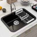 Plantex Granite Single Bowl Kitchen Sink/Quartz Acrylic Kitchen Sink/Sink for Kitchen UV Protected Sink/Quartz Kitchen Sink/Single Bowl Sink with Coupling (18x24 In) Under Counter Basin (Charcoal Black)