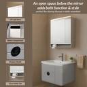 The high quality unbreakable high-performance plywood is used in the construction of the plantex vanity with white color. is extremely advised for bathroom cabinets because it is resistant to bacteria, fungi, water, and termites. for hardware the best quality high performance pull-handle are used. the washbasin has a single faucet hole, easy maintenance, and is made of superior quality ceramic construction. At the centre of the plantex washbasin vanity set is the ceramic undermount washbasin, which provides a stylish and comprehensive space-saving solution for your bathroom. its sleek surface, which is supported by the plumbing and sits atop the cabinet, ensures long-lasting durability, beauty, and ease of washing and upkeep. it also adds a touch of elegance to your bathroom.Plantex LED Mirror Cabinet is made of High Grade Ply Wood Material and It has Defogger Functionality.Plantex vanities are include additional storage space to keep the bathroom organized and spotless. the vanity offers a plethora of alternatives, including the latest in modern style and technological innovation. The size of the mirror is (l) 75 x (w) 15 x (h) 73 cm, the vanity cabinet with basin is (l) 80 x (w) 50 x (h) 50 cm. included package is 1 washbasin, 1 led mirror cabinet with sensor led main cabinet and along with fitting hardware