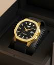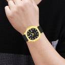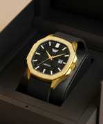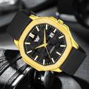 Featuring a striking gold finish, this watch exudes sophistication, making it a perfect accessory for any occasion. The watch is equipped with a durable silicone strap that ensures both comfort and resilience, ideal for daily wear.
