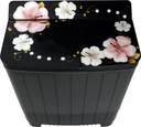 Thomson 10 kg 5 Star Aqua Magic Grande Series with Floral Toughened Glass with Soft Closure and Double Waterfall Semi Automatic Top Load Washing Machine Black, Grey (TSG1000)