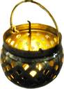 Bowl T-Light Holder with Floral Cut Design, Gold Finish, Hanging Handle Iron 1 - Cup Candle Holder (Gold, Pack of 1)