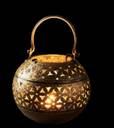 Lantern with Geometric Cutout Pattern Golden Handle Set of 2 Iron 2 - Cup Candle Holder Set (Gold, Pack of 2)