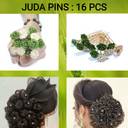 Productmine Bridal Hair Bun Juda Pins Artificial Green Rose and Clear Rhinestone- 8 PCs Each Hair Pin (Multicolor)