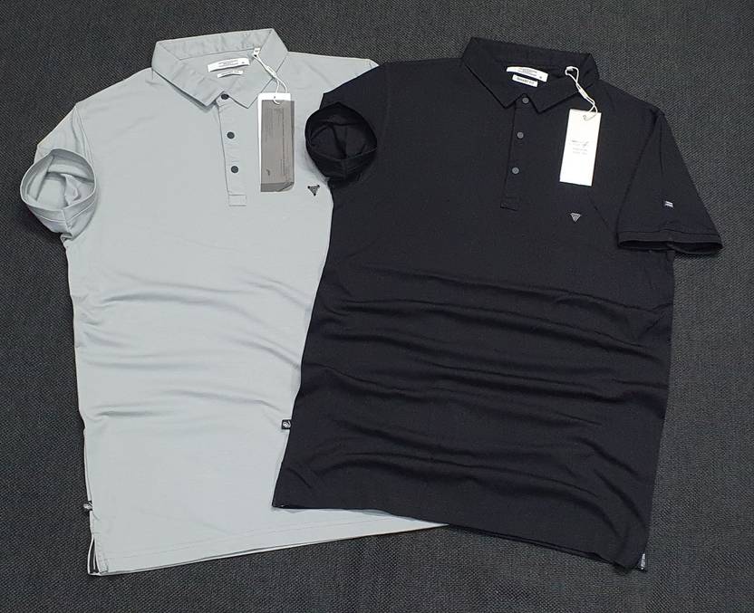 Men Solid Polo Neck Pure Cotton White, Black T-Shirt