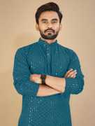 Kurta for men is made from cotton rayon fabric and Lucknowi work on it with Sequins perfect for wedding and party or festive wearing kurta for men