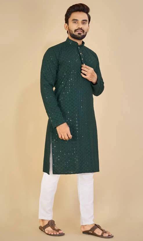 Kurta for men is made from cotton rayon fabric and Lucknowi work on it with Sequins perfect for wedding and party or festive wearing kurta for men