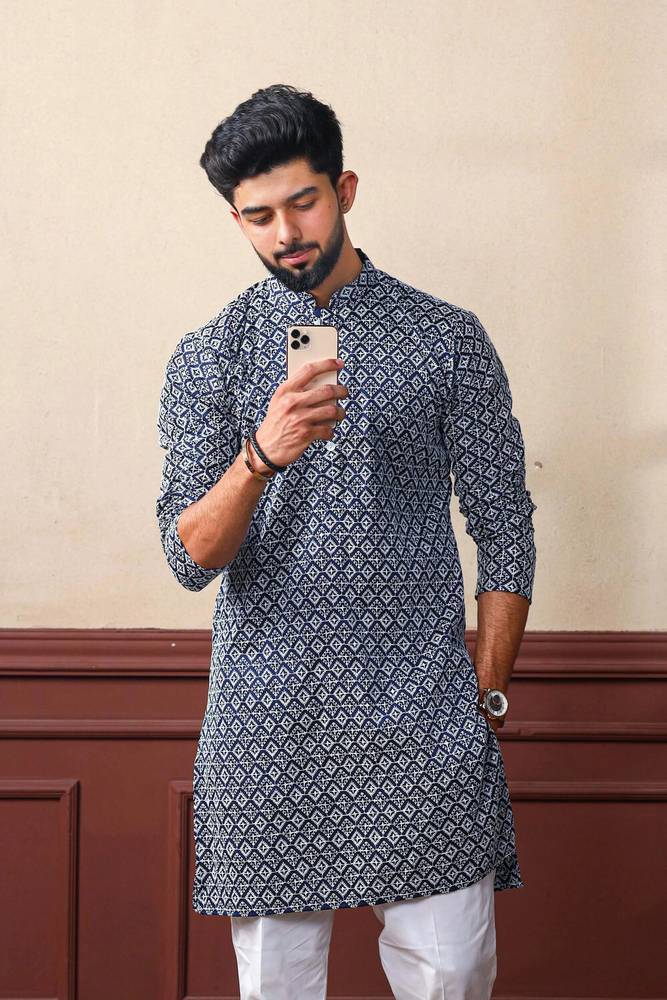 Upgrade your ethnic wardrobe with this elegant Men’s Printed Kurta, designed for a perfect blend of tradition and modern style. Crafted from premium breathable fabric, this kurta features a subtle all-over geometric print that adds sophistication without being overpowering. The mandarin collar with buttoned placket gives it a refined look, making it ideal for festive occasions, weddings, family functions, and casual ethnic wear. Pair it with churidar or pajama for a complete classy appearance.