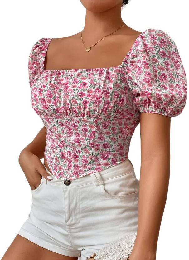 Projas Casual Floral Print Women Pink Top