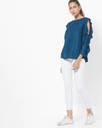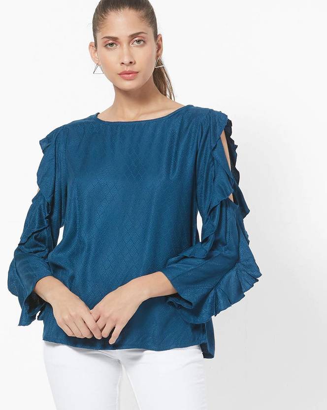 Project eve Womens Teal Blue Self Design Ruffled Top (Pack of 1)