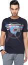 Men Printed Round Neck Pure Cotton Blue T-Shirt