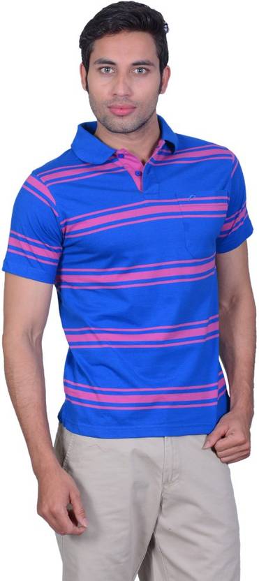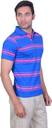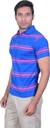 PROLINE Men Striped Polo Neck Polycotton Blue T-Shirt