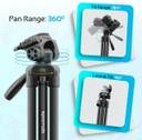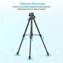 The rapid center column allows quick and easy camera height adjustment. 3-section leg with quick release flip-locks, allows you to place the tripod for an appropriate height in seconds. With height adjustment buckle, height varies from 53 centimeters to 150 centimeters with an extended center column to meet your different shooting needs.