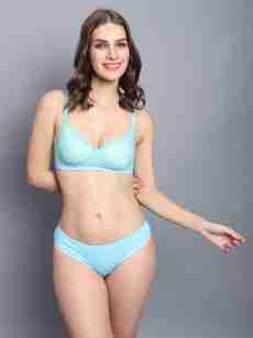 PrettyCat Bra & Panty Set Self Design Light Blue Lingerie Set