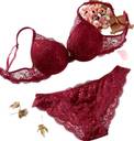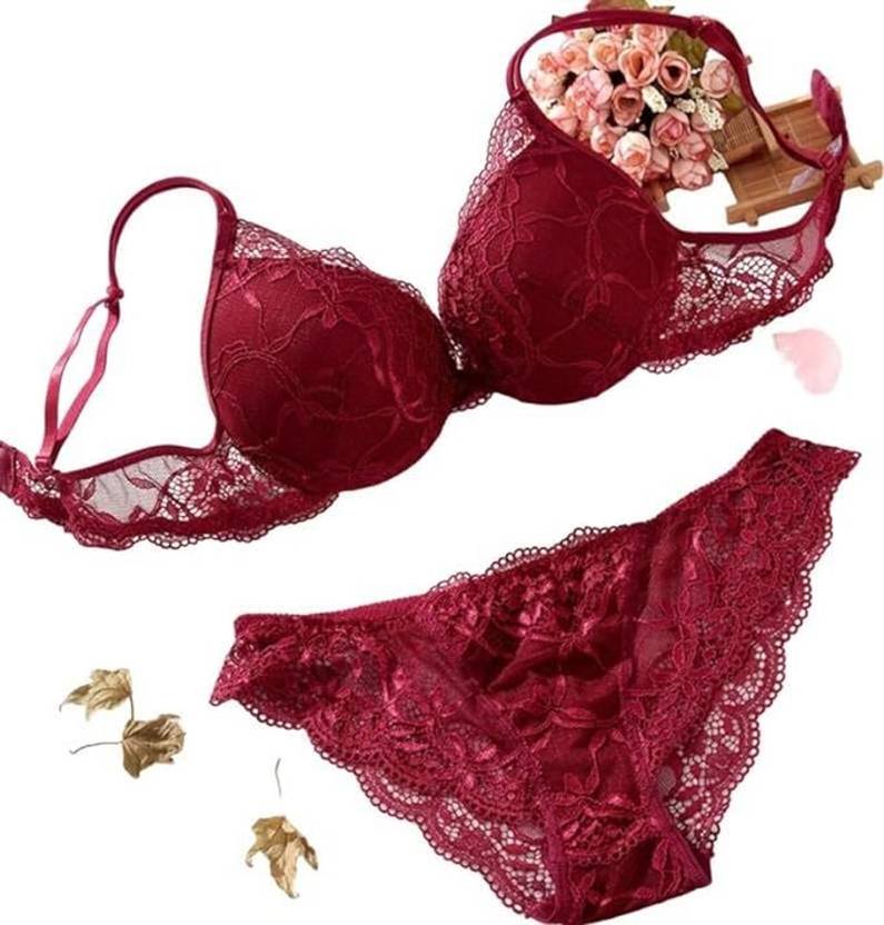 Bra & Panty Set Self Design Maroon Lingerie Set