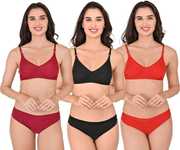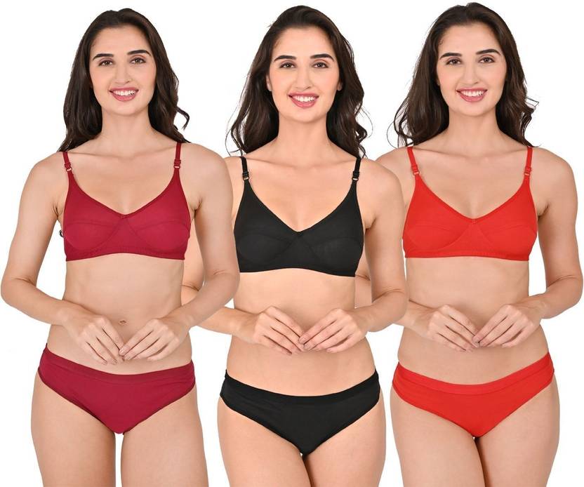 PROOT Bra & Panty Set Self Design Red, Maroon, Black Lingerie Set