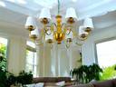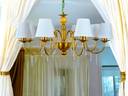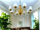 Prop It Up 8 Light British Style Gold Antik Finish with Fabric Shade Pendant Hanging Light Chandelier Ceiling Lamp (White)