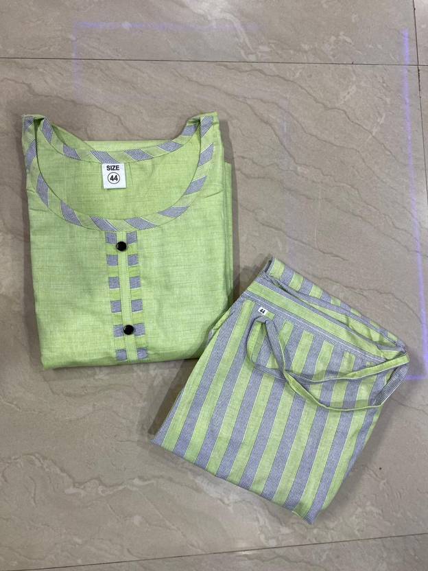 Women Striped Cotton Blend A-line Kurta (Green)