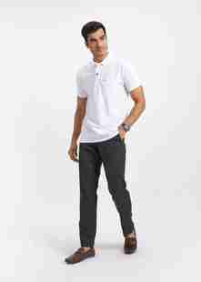 SAM & JACK Men Solid Polo Neck Polycotton White T-Shirt