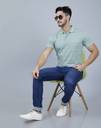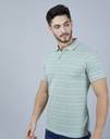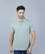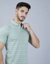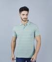 Men Striped Polo Neck Cotton Blend Green T-Shirt