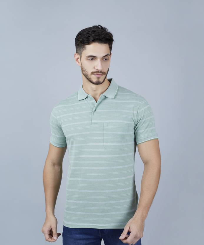 PRORIDERS Striped Men Polo Neck Green T-Shirt