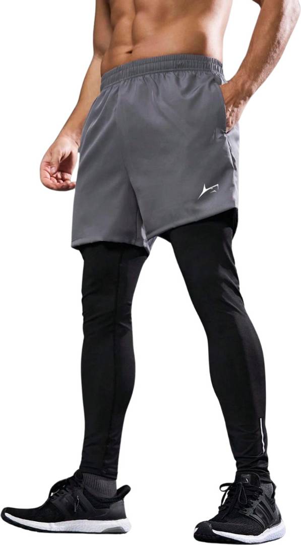 2 in 1 Active Dual Pants | Men's 2 in 1 Running Pants, Gym Workout Compression Pants for Men Training Athletic Pants