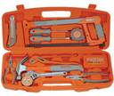 18MM CUTTER KNIFE, 3 METER MEASURING TAPE, LONG NOSE PLIER 6", WATER PUMP PLIER 10", COMBINATION PLIER 8", CLAW HAMMER 16OZ, ADJUSTABLE WRENCH 8", PVC TAPE, 5 IN 1 STEEL FILE SET, BLOW CASE