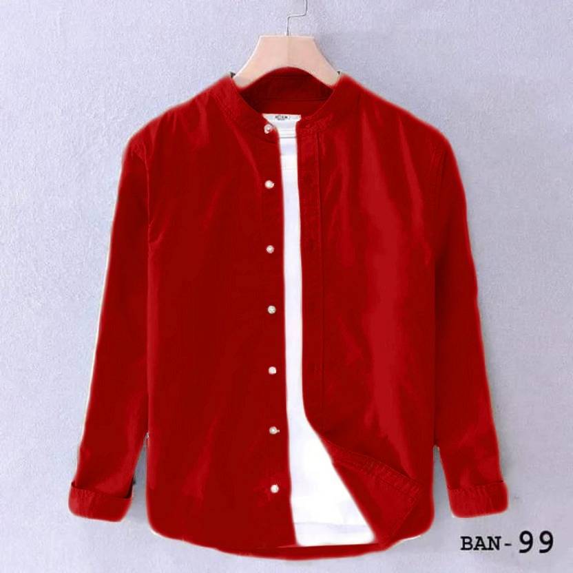Women Slim Fit Solid Mandarin Collar Casual Shirt