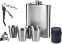 Protos India.Net Hip Flask Wine Bottle Opener Funnel Peg Measurer Shot Glasses 8 - Piece Bar Set (Stainless Steel)