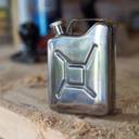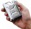 This is a well made Silver painted stainless steel hip flask shaped like a Jerry Can. This is a great little novelty hip flask that is a prefect stocking filler. The back of this flask matches the same as the front. We can engrave this item in the centre of the middle square. To help reduce the cost of this item it comes in a stock box, you may want to upgrade to a satin lined presentation box for a better look. This hip flask holds 5oz/142ml liquid The size of this item is: 9.5cm High (to top of lid) 7cm wide 2.5cm thick