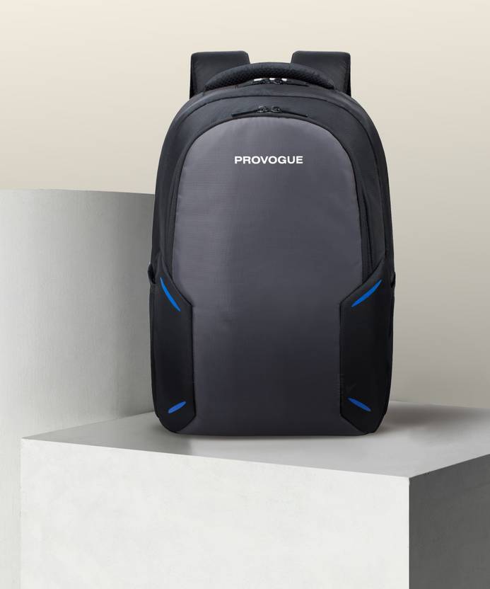 Provogue Laptop Bag : A Spacious and durable laptop backpack for casual usage, school / college / office and travel. Size: 16.5 inch X 12.5 inch X 8 inch. Capacity: 27 liters. This fully padded bagpack is made of high grade water resistant polyester material that gives it strength and durable for long-term use. This “MAKE IN INDIA” Product features 2 large zippered compartments, padded laptop sleeve for upto 15.6" laptops, internal organiser, 2 water bottle /umbrella pockets, padded handle, backside belt for trolley support, quick haul grab loop for comfort, 3D air ventilated back panel for preventing sweat, heavy duty zippers and sliders, and adjustable straps. Ideal bag for boys, girls, men and women