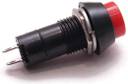 Push button switch. Action type: momentary contact type, Button diameter: 12mm, Total length: 40mm, material: plastic and metal, colour: red and black