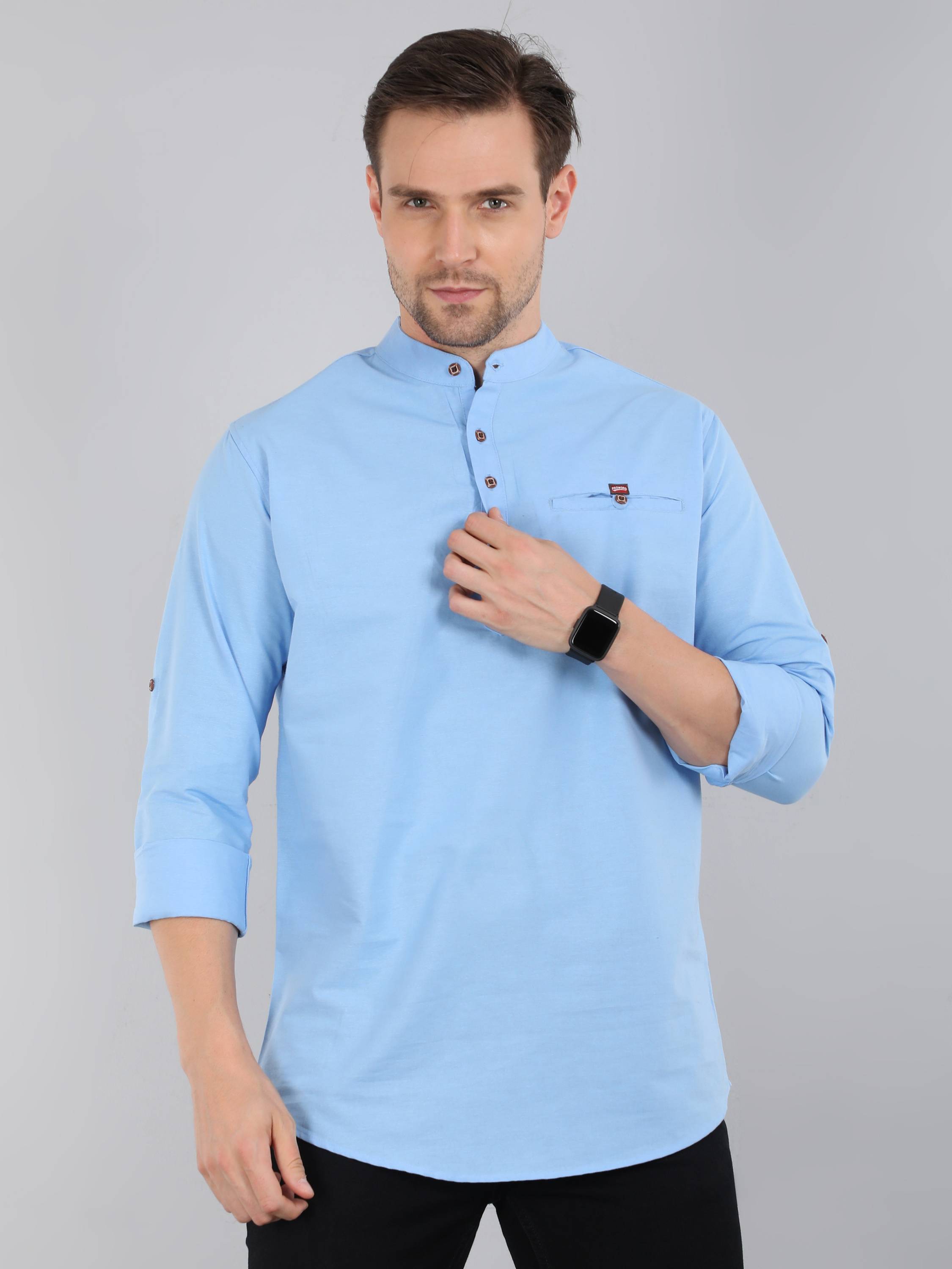 Proword Men Solid Straight Kurta (Dark Blue)