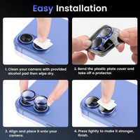 Sporting an easy, tool-free setup, this lens protector can be applied in just a few steps. Its process typically involves cleaning the camera lens with the provided alcohol pad, followed by drying with a soft wipe. The backing of this protective film is bent and carefully removed, allowing this protector to be aligned precisely with the lens. Light pressure helps secure it in place, ensuring a snug fit. Additionally, this protector is removable to offer flexibility for future adjustments or replacements.