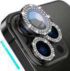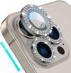 prozzile Camera Lens Protector for Iphone 15 Pro, Iphone 15 Pro Max, Premium Quality Bling Tempered Glass Screen Protection Camera Cover Diamond Metal Individual Ring (Pack of 3)