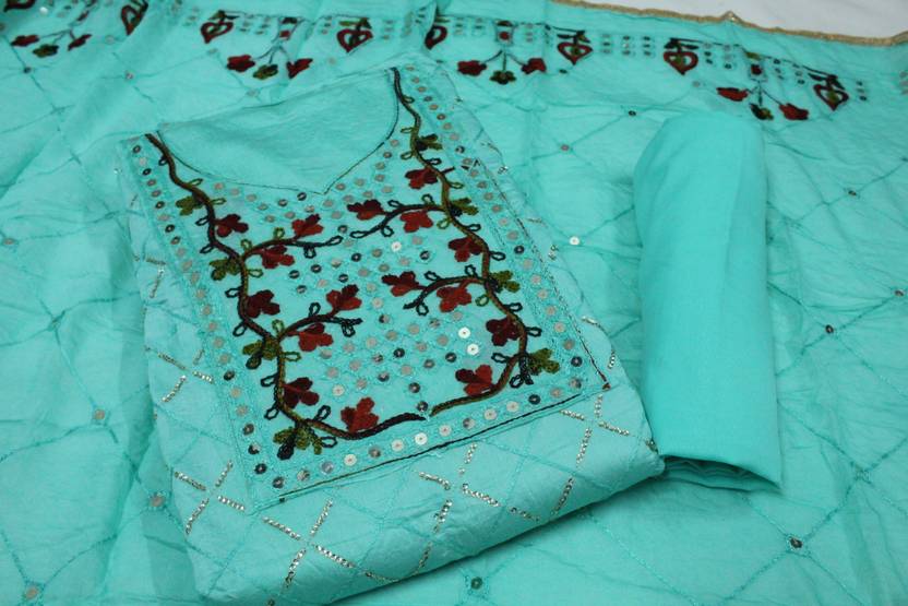Elevate your traditional wardrobe with this beautiful Aniri Fashions Women Unstitched Salwar Suit Dupatta Material. The set includes a stunning printed top, solid bottom, and a matching dupatta. Perfect for any festive occasion or special event, this outfit is sure to make you stand out in a crowd.