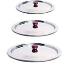 PRV Steel Lids with Knob, Set of 3 (Size 2- 21cm, Size 3- 24cm & Size 4- 26.5cm) 8.3 inch, 9.4 inch, 10.4 inch Lid Set, Pack of 3 (Stainless Steel)