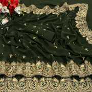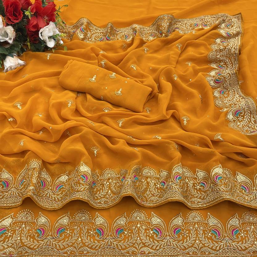 PRYAG SAREES Embroidered Bollywood Georgette Saree (Gold)