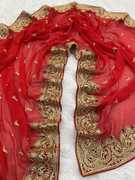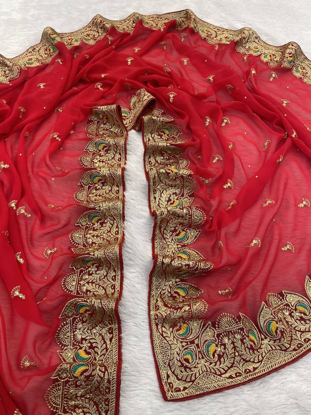 PRYAG SAREES Embroidered Bollywood Georgette Saree (Red)